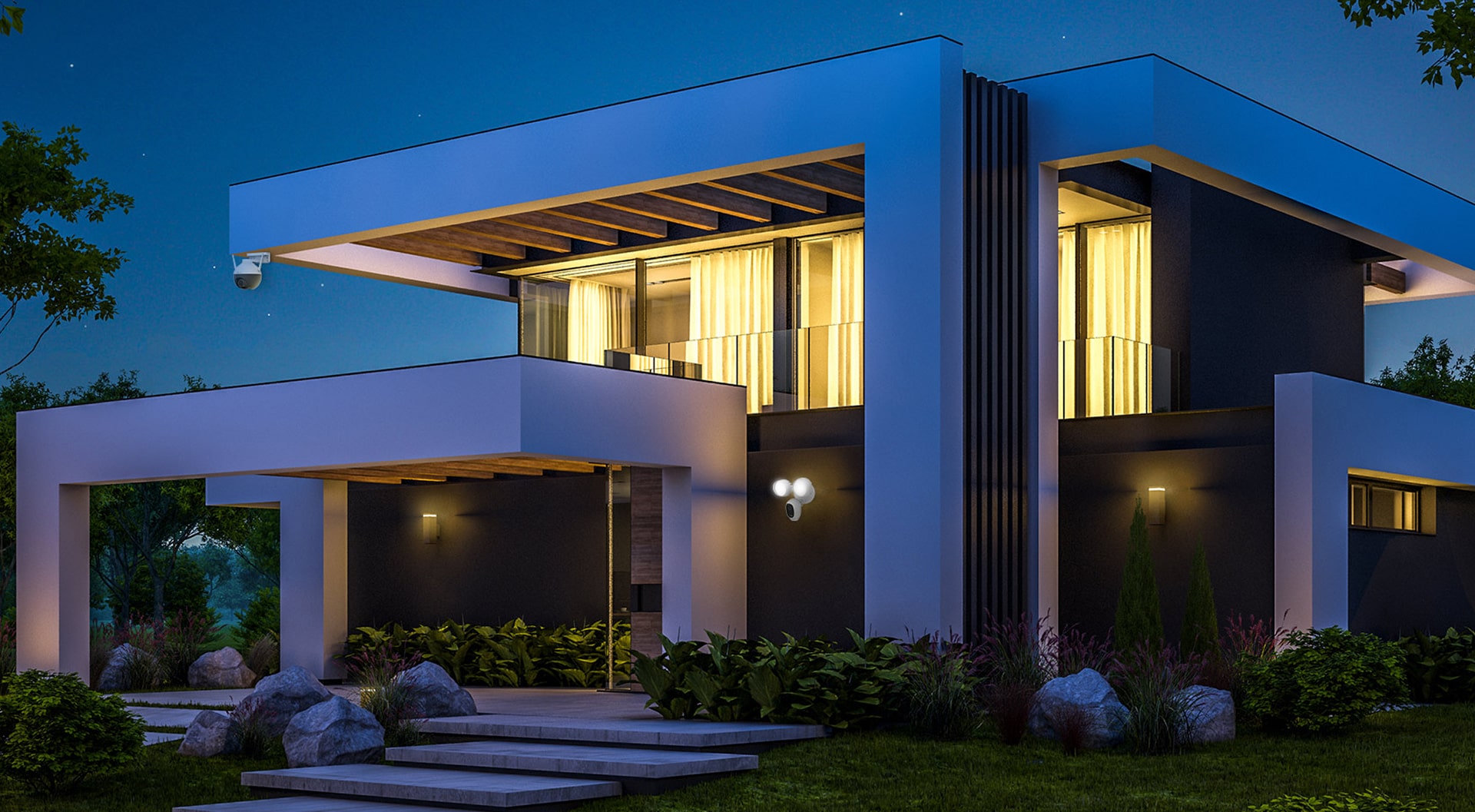 When suspicious characters approach, the Outdoor Camera Pro uses light and sound to send them running.